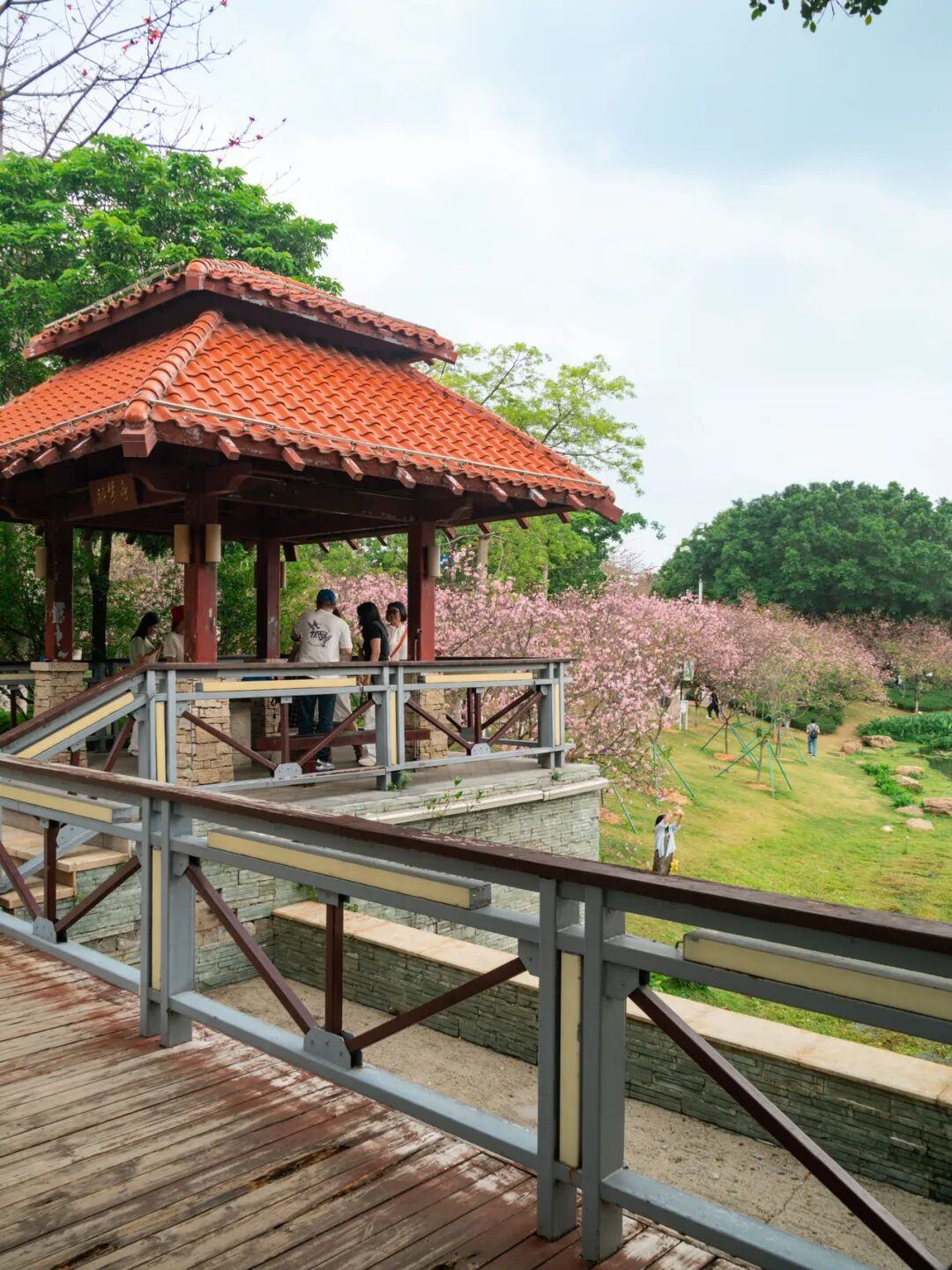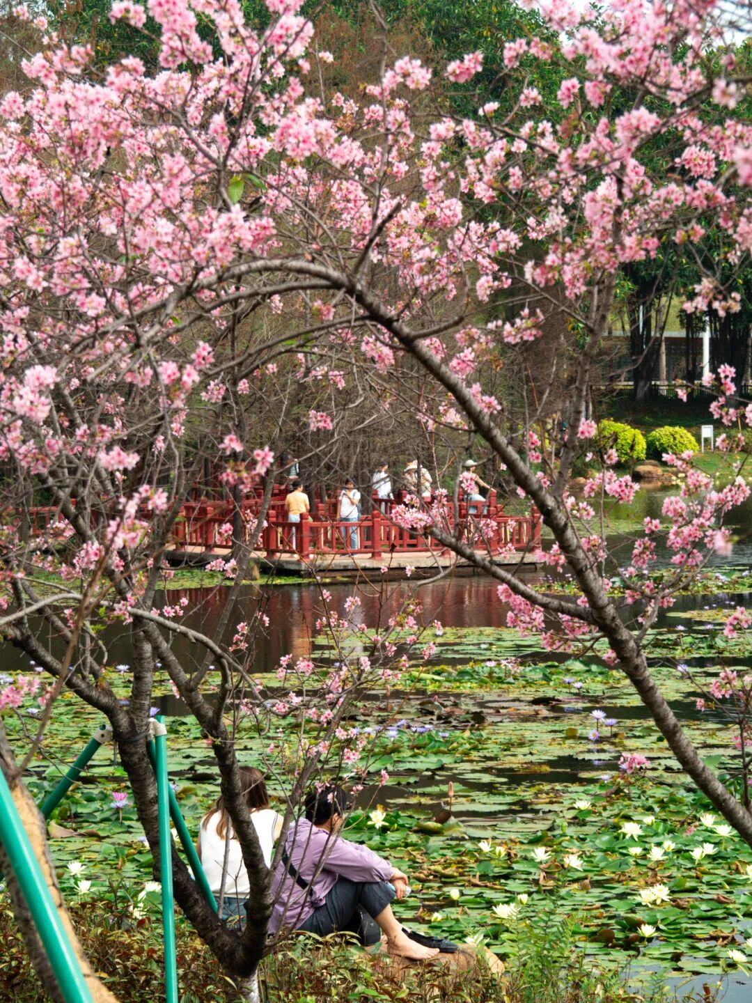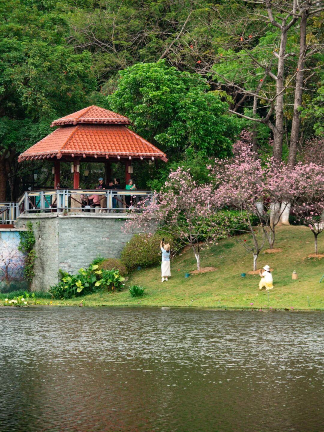 在湖边的醉梦亭,可以俯拍整片樱花林。
