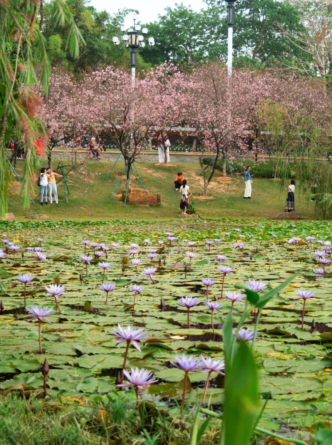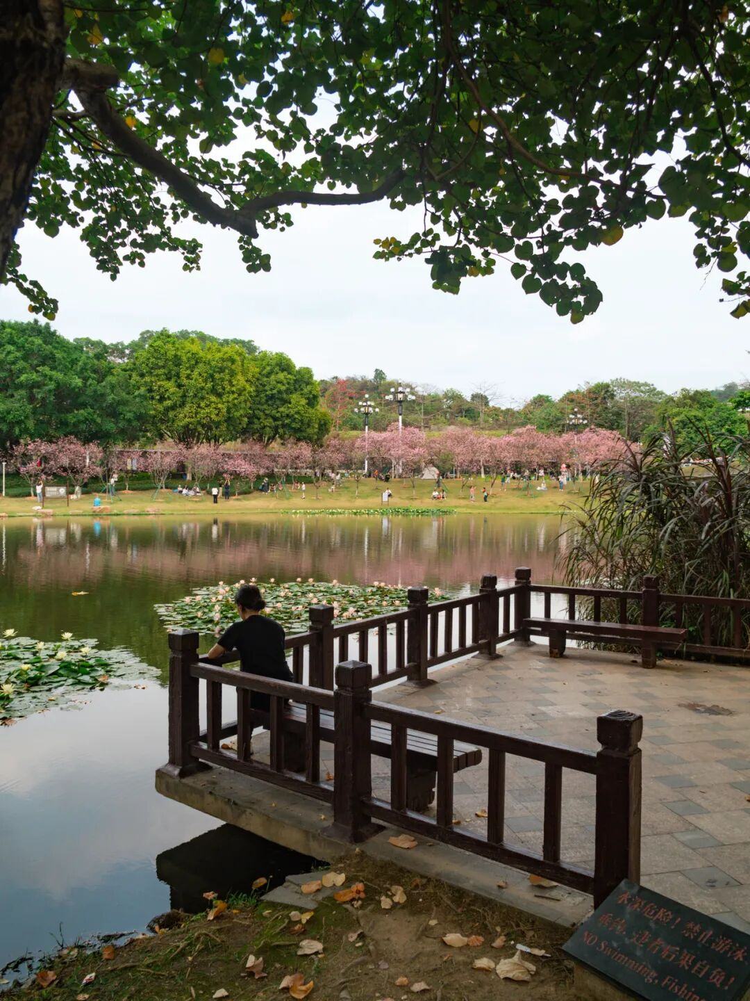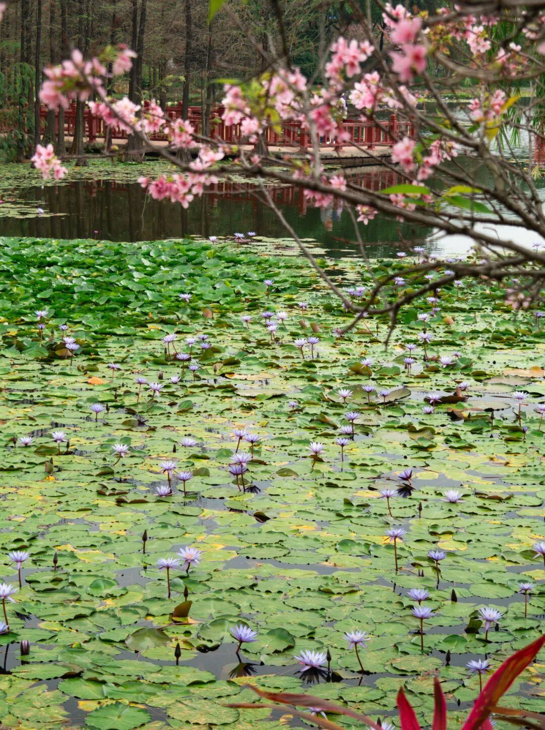 在湖边的醉梦亭,可以俯拍整片樱花林。