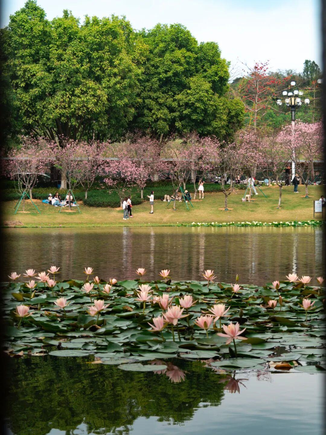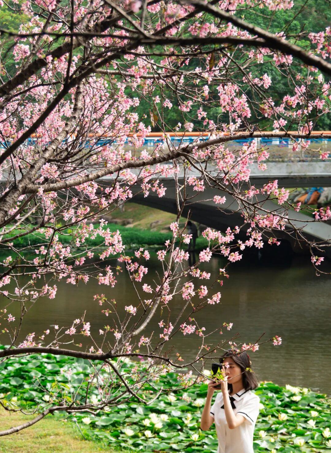 创业公园像是一处都市里的静谧绿洲,来这里赏樱不必匆忙。