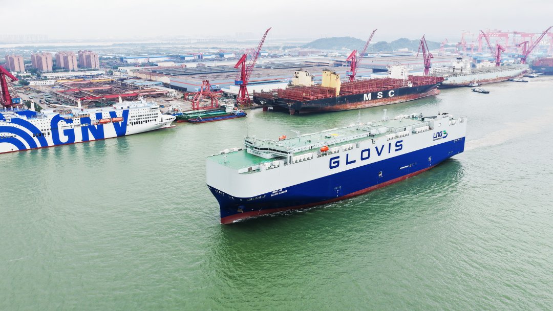 3月31日,中船广船国际为韩国HMM打造的10800车LNG 双燃料汽车运输船开启试航,这是全球在建首艘万车级双燃料汽车运输船。该船总长230米、宽40米,14层车库甲板可装载10800辆汽车,首尾相连超50公里,适配电车、氢能车等多元车型。它搭载燃油与LNG双燃料推进系统,配备轴带发电机,航行时可自行发电,满足TierⅢ排放标准,节能减排效果突出。汽车运输船建造难度大,团队攻克薄板变形难题,实现滚装设备国产化。面对工期挑战,项目团队仅用不足70天完成码头建造与备航,诠释 “广船速度”,标志着广船国际完全掌握该船型建造技术,稳居细分市场领先地位。