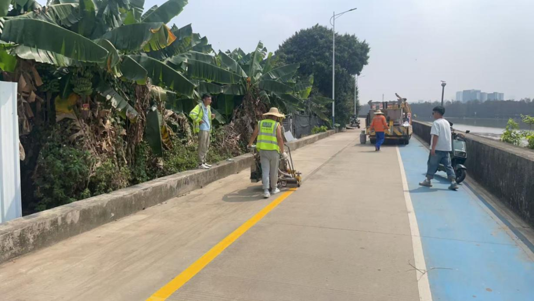海堤路不算宽,大兴村在海堤路划定多个整齐规范的单向停车位,留出会车空间,使车辆能够有序行驶和停放,完整保留了巡河碧道,最大程度维护了道路的公共秩序和发挥巡河作用。