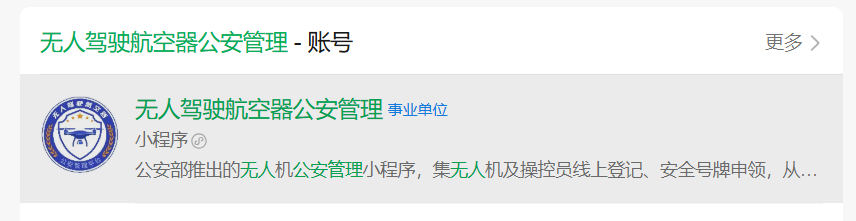 在微信搜索“无人驾驶航空器公安管理平台”,找到“无人驾驶航空器公安管理”小程序。