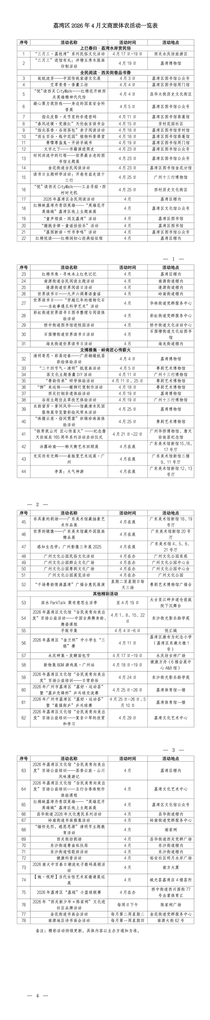 荔湾将在四月开展全民阅读系列活动,举办启动仪式并在全区铺开多元体验:名家诗词品鉴、青少年童声共诵、行走课堂、粤语方言伴读……阅读推广的触角将延伸至社区。与此同时,各街道依托新时代文明实践阵地,围绕不同人群需求推出沙龙、分享、手作等阅读惠民活动,将书香送到家门口,营造“爱读书、读好书、善读书”的浓厚氛围。