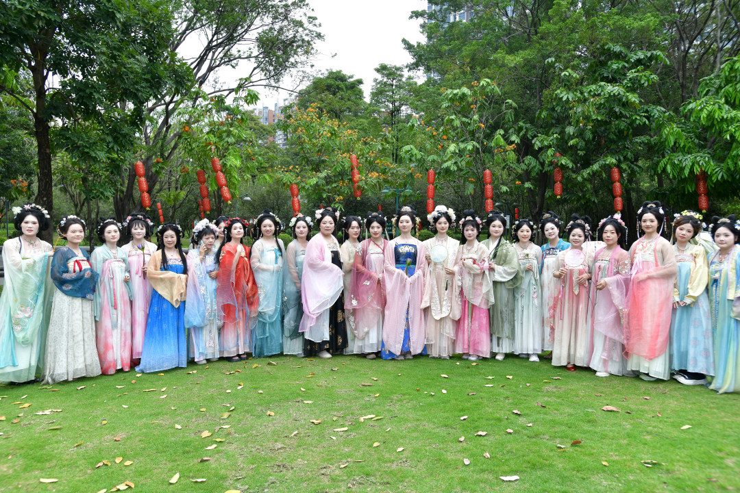 4月2日,2026广州花朝节在珠江公园启幕,本次活动以“花朝逢春序,春意映珠江”为主题。图为活动吸引了众多穿着汉服的市民参加。
