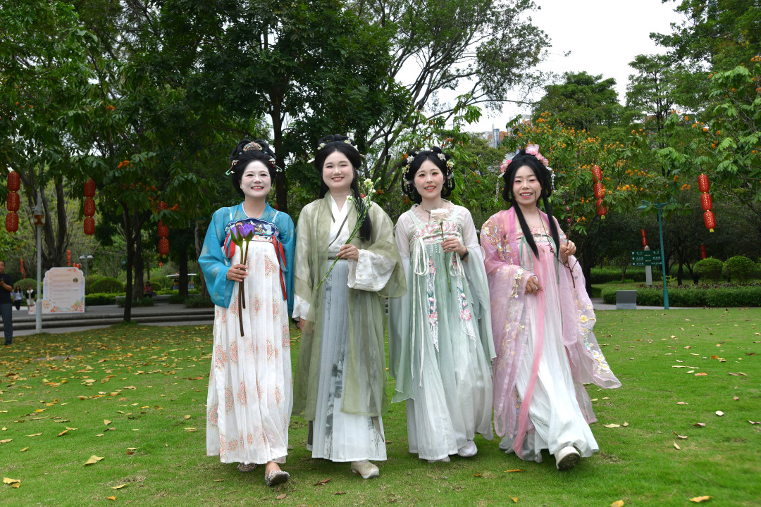 4月2日,2026广州花朝节在珠江公园启幕,本次活动以“花朝逢春序,春意映珠江”为主题。图为穿着汉服的市民参加活动。