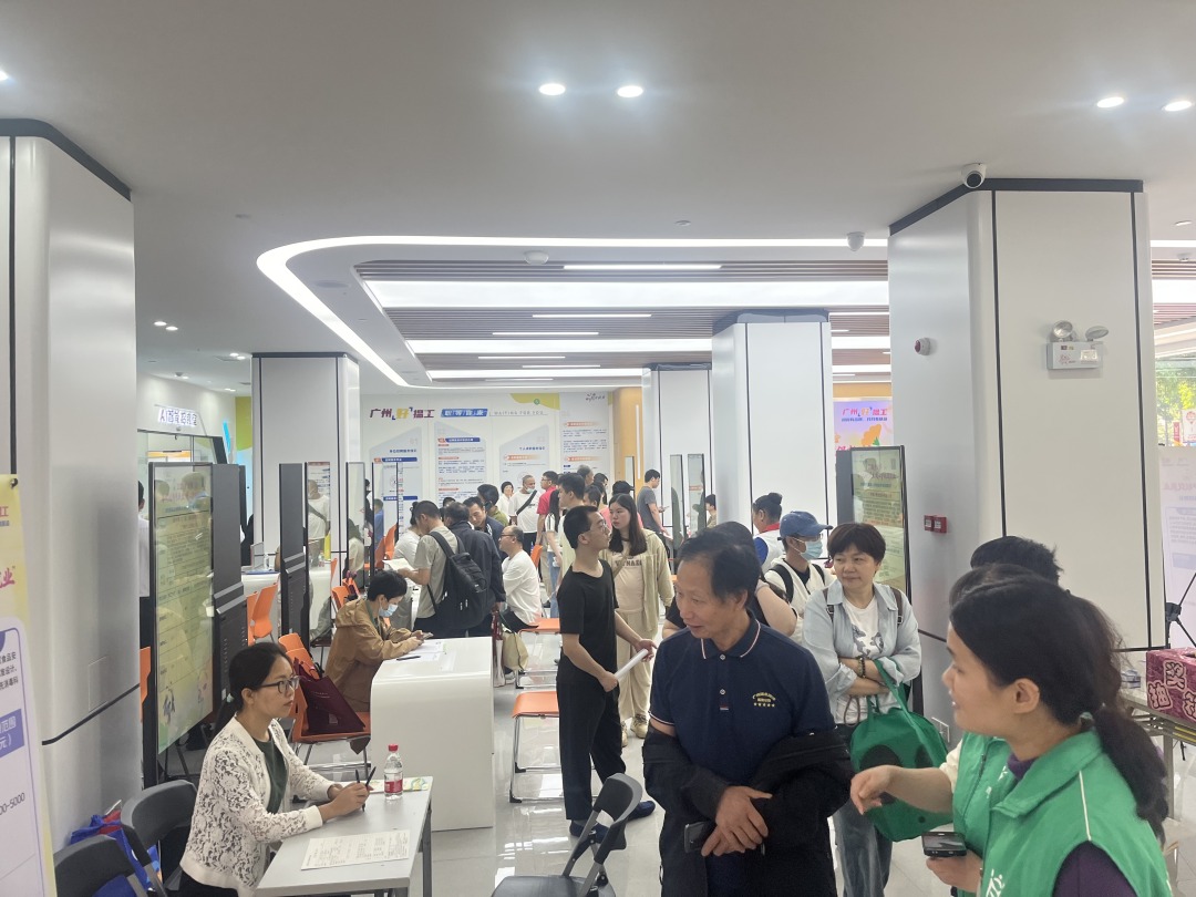 招聘会汇集广州日报、梯悦传媒、沃尔玛白云分店等33家优质企业,覆盖智能制造、生物科技、家政服务等领域,提供2500余个岗位,涵盖普工、安保、家政等多个工种。针对临时遇困人员需求,多家企业放宽录用条件,提供包食宿、工作制服等福利,锦日物业更提供入职技能培训,切实破解求职过渡期困境。