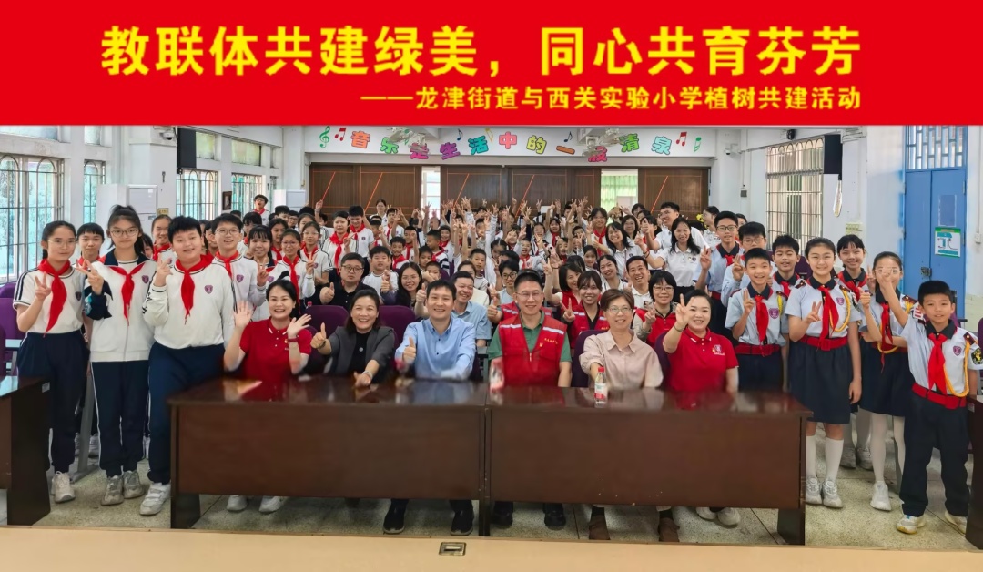 4月1日上午,龙津街道与西关实验小学在西关实验小学光复校区联合开展“教联体共建绿美,同心共育芬芳”植树共建主题党日活动。荔湾区应急管理局、龙津街道党员代表,学校党团员教师、少先队员及家长代表共同参与。活动现场,龙津街道办事处向学校赠送70棵金桂树苗,学校回赠锦旗,区应急局共同见证。少先队员代表发出爱绿护绿倡议。随后,各方代表以“大手牵小手”方式结对协作,扶苗培土浇水,携手种下树苗。