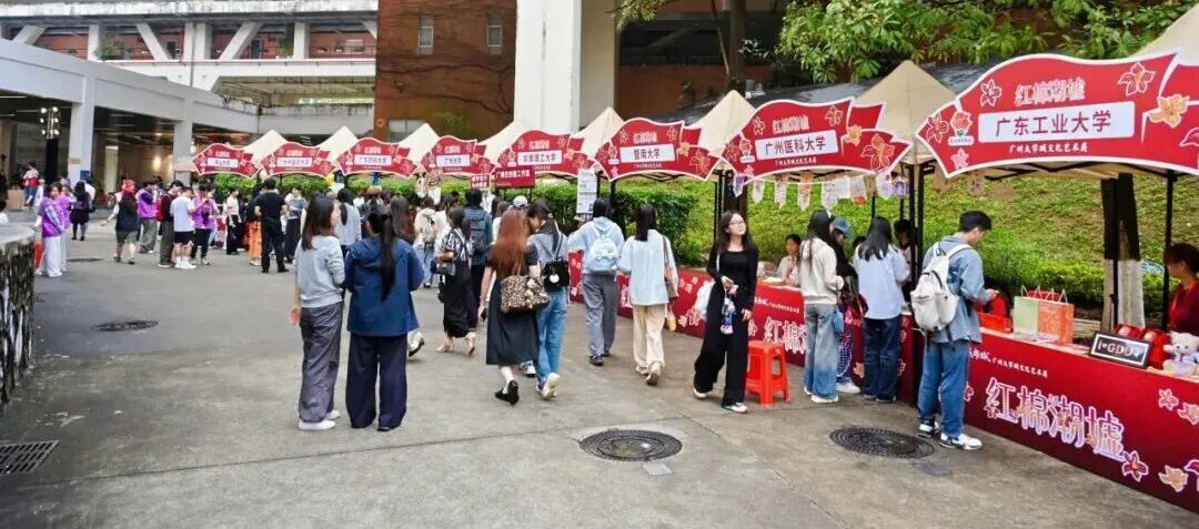 为打破展馆边界、让红色文化走近大众,活动创新打造红棉潮墟创意市集,先后在广州画院、广州大学城中心湖公园(新时代文明实践主题公园)火热开市,汇聚高校科创团队、文创企业、非遗代表性传承人与公益服务单位,设置文创体验、科创展示、非遗互动、公益宣传等特色摊位,将红色文化、青春创意、科创成果、岭南非遗、便民服务融为一体。华南师范大学红棉花烫印、广州中医药大学中医药文化体验、广东工业大学剪纸互动等项目深受欢迎,市民与学子在逛市集、品文创、玩体验、学知识的过程中,近距离感受大学城的青春活力与艺科融合魅力。