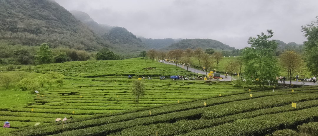 春日的英德,英德最动人的风景不在别处,而在那云雾缭绕的茶山之上。凌晨五时,天色未明,积庆里红茶谷已笼在一层薄纱般的晨雾中。山风轻拂,雾气如潮水般涌动,沿着峰林的沟壑缓缓流淌。待东方泛起鱼肚白,第一缕阳光穿透云层洒向茶园,整座山谷瞬间被点亮——连绵的茶垄如绿色的绸带,一层层盘绕在山腰,嫩绿的茶芽上挂着晶莹的露珠,在晨光中熠熠生辉。