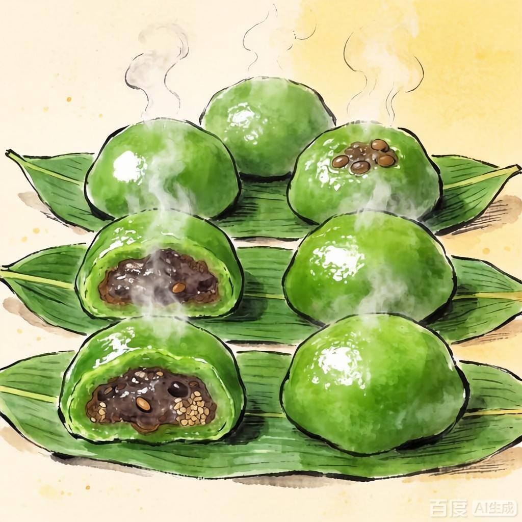 做法:选摘新鲜艾草的嫩叶,洗净后焯水挤干,用搅拌机打成泥,与糯米粉、粘米粉和适量白糖混合揉团,包入馅料后蒸熟即可食用。