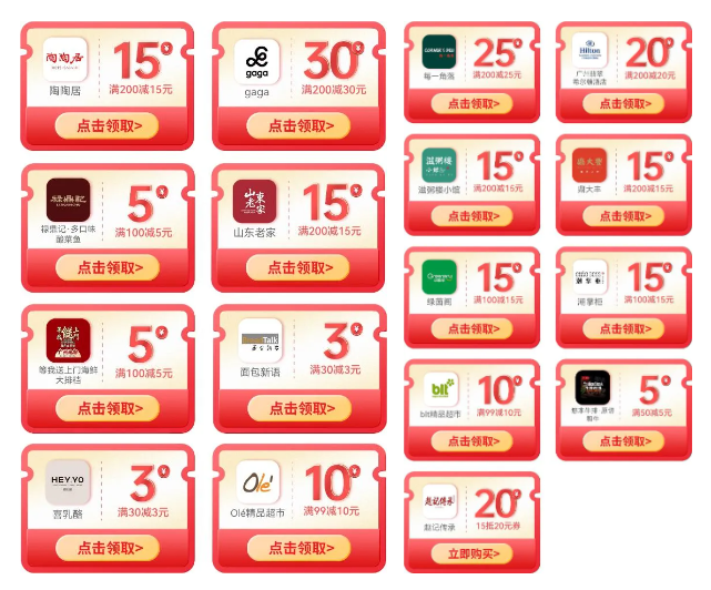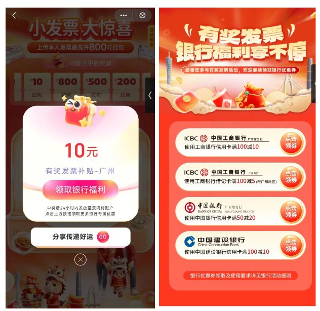 更惊喜的是,抽奖后还能额外领取多家银行权益。工行、中行、建行已新上线满100立减10元、满100立减5元、满50立减20元等银行福利,让市民享受实实在在的优惠。