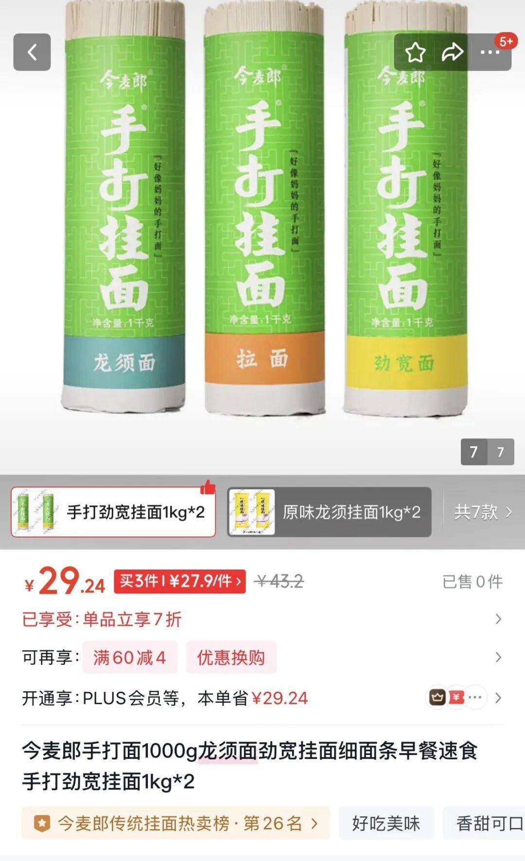 四川日报记者在淘宝等线上平台核查发现,今麦郎该款挂面产品详情页及包装实拍图中,“手打挂面”四个大字在包装上十分醒目,旁边还附有“好像妈妈的手打面”宣传语,极易让消费者将产品与传统手工制作的挂面关联起来。放大图片仔细查看才能发现,“手打”二字的右上角,仅用极小的字体标注了代表注册商标符号®,普通消费者难以察觉。