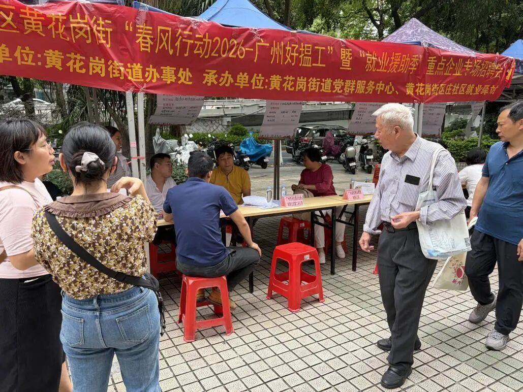 日前,由黄花岗街道办事处主办,街道党群服务中心、区庄社区就业驿站、永泰社区党委、黄花岗街“双百工程”社工站、黄花岗街南粤家政基层服务站联合承办的“春风行动2026-广州好揾工”暨“就业援助季”重点企业专场招聘会在越秀区东山广场举办。活动精准搭建企业与求职者对接桥梁,现场人气高涨、氛围热烈,为辖区居民送上了一场优质、高效的“家门口”就业服务。