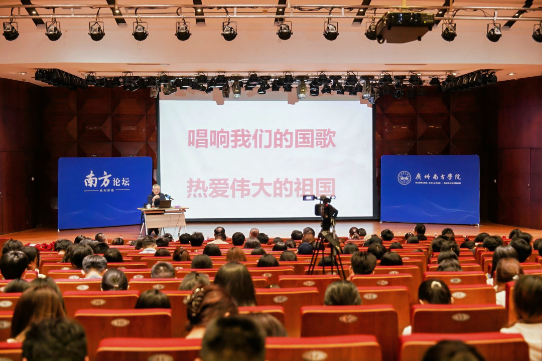 近日,广州南方学院南方论坛第147期邀请第十一届、十二届全国政协委员、中国人民解放军军乐团原团长于海教授担任主讲嘉宾,以“最爱我们的国歌”为主题为师生带来了一场艺术的洗礼与爱国主义精神的淬炼。广州南方学院校长汤涛院士等师生代表共计400余人参加讲座。