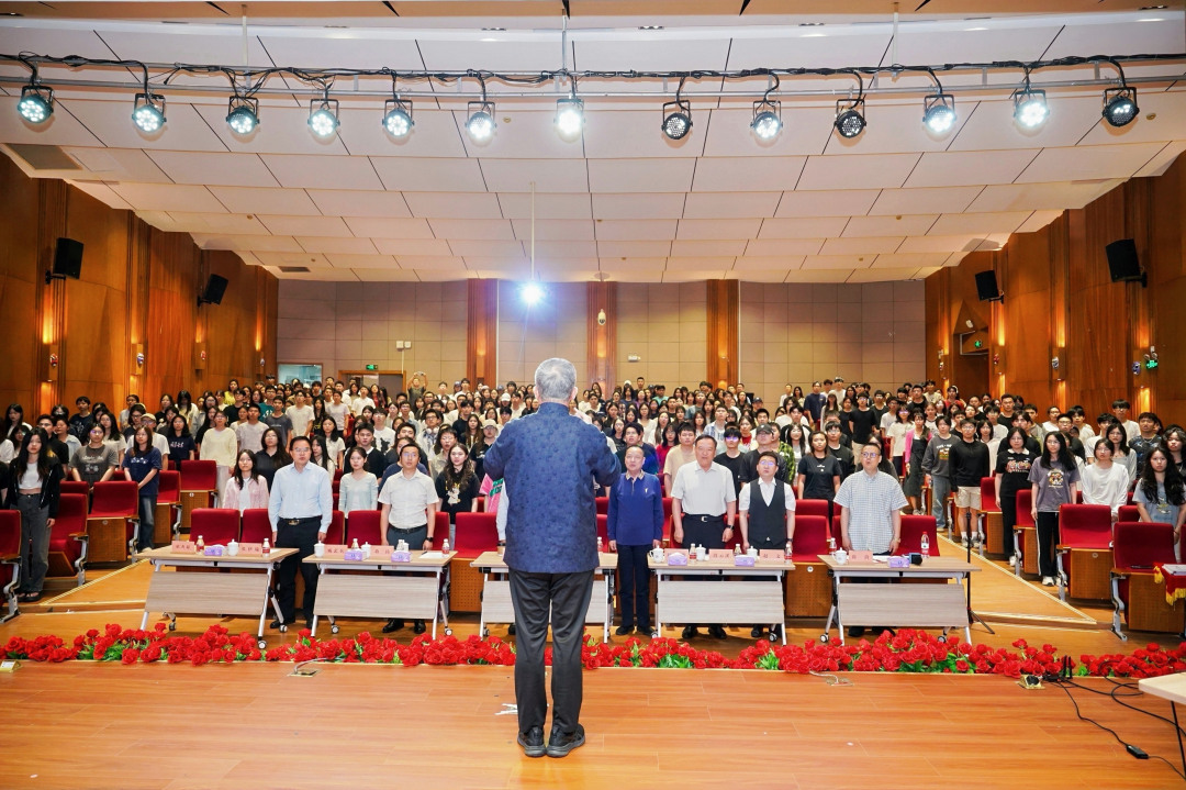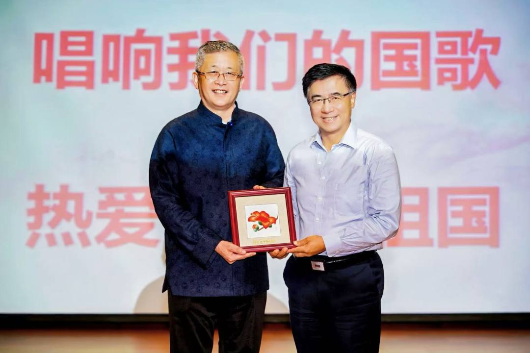 全体师生在于海教授的指挥下肃立齐唱国歌,铿锵有力、满怀家国情怀的歌声激荡在会场。