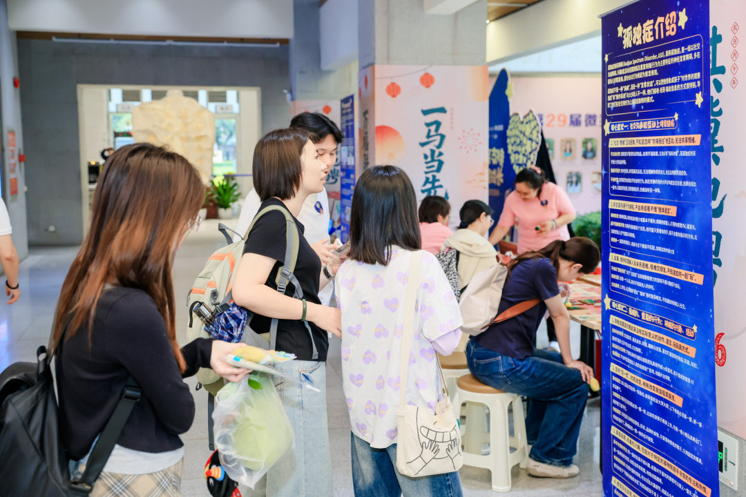 活动现场同步开放了手工DIY互动摊位、孤独症科普宣传摊位、口腔健康小游戏摊位,普特融合的互动形式不仅让现场读者更直观、更深入地了解孤独症相关知识,消除认知偏见,也为孤独症儿童提供了一个自然、轻松的社会交流场景,助力他们逐步打破社交壁垒、更好地融入社会。