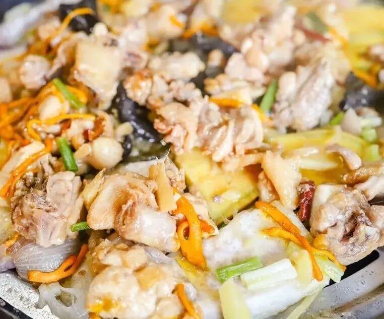 还有啫啫鸡煲——蒜头、洋葱、葱头在瓦煲里高温焗出“啫啫”声响,鸡肉表面微焦,镬气十足,连骨头都有味。二叔仔饭店、梁權名鸡等店家,把这锅鸡煲做得让人连下三碗饭。更别提手撕鸡、腐乳鸡、芝麻鸡、盐焗鸡、桂花鸡……顺德的鸡,仿佛能变出一百种吃法。从大良的桥珠印象、容桂的生记饭店,到勒流的东海海鲜酒家、杏坛的粤峰味,每个镇街都有自己的“鸡中招牌”。