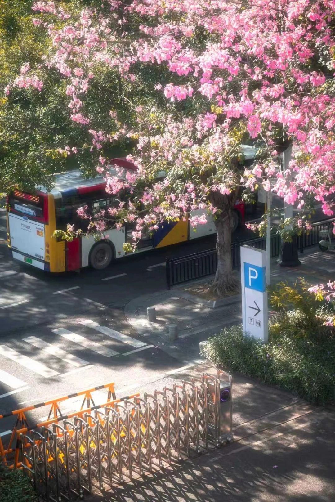 拍摄者罗文睿,是广州商学院信息技术与工程学院的一名大三学生。那天,他在广州黄埔区科学城偶遇异木棉盛放,阳光穿过花枝,公交车恰好驶过,他本能地按下了快门。