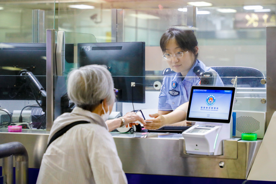 顺德边检站移民管理警察为旅客快速办理通关手续