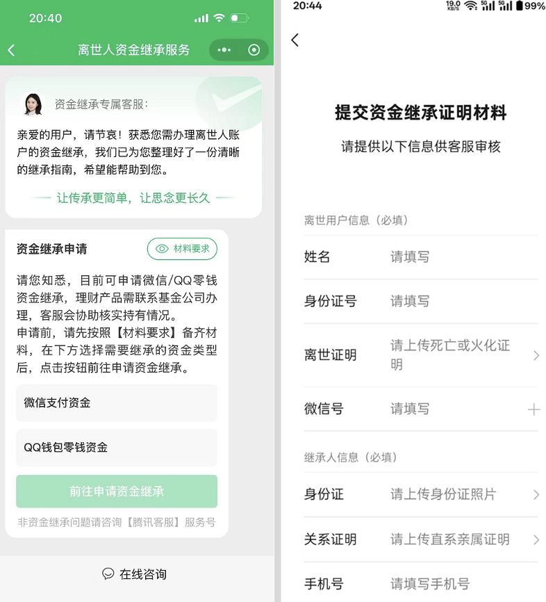 清明节前夕,4月3日,腾讯客服公众号发布消息,已升级逝者微信QQ零钱资金继承专属服务,在材料完备情况下,逝者零钱资金一般一到三个工作日、最快24小时可完成提取。以高效合规的服务和暖心的人文关怀,切实保障公民合法财产权益,打通数字资金遗产继承“最后一公里”。