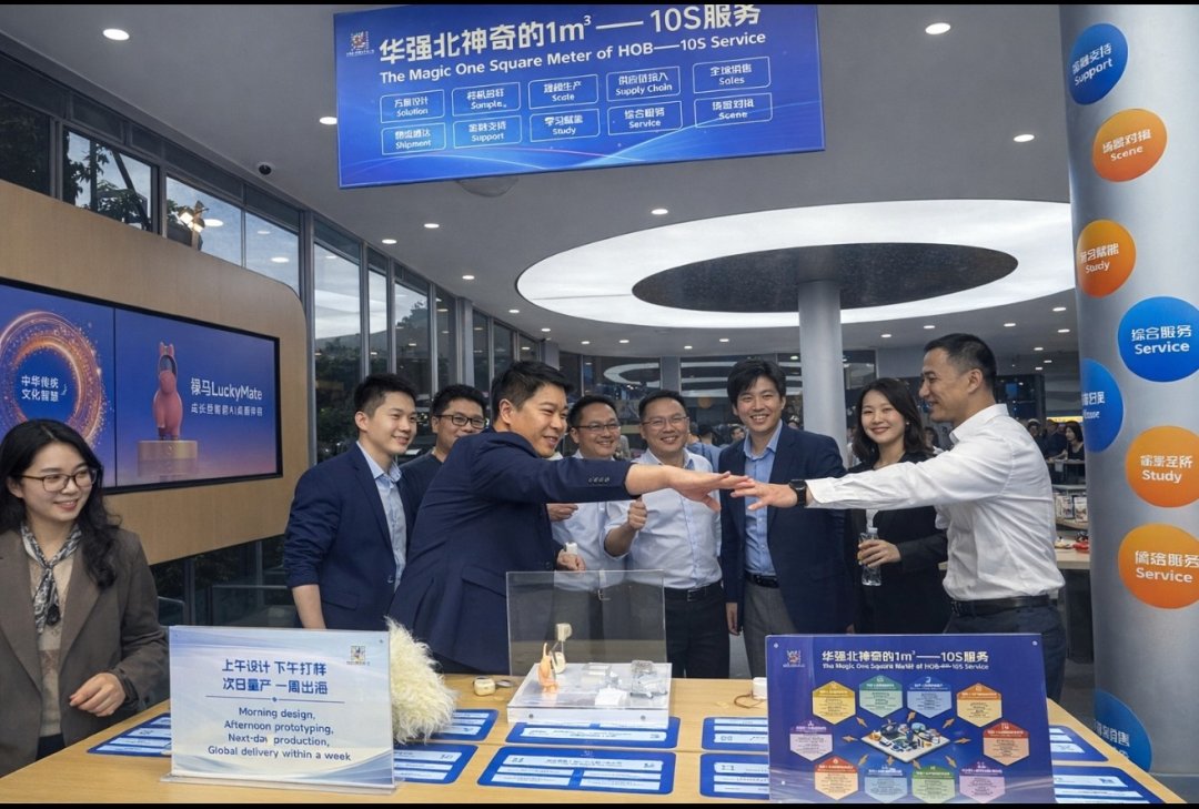 在产业链协同上,创新打造“神奇的一平方米”10S服务体系,将一米柜台升级为集成产业单元,实现创意生成、结构设计、快速打样、柔性生产、全球销售与跨境交付全流程贯通。依托华强北成熟密集的电子信息产业和现代化生产性服务业资源,整合芯片、模组、结构件、整机制造等上下游环节,叠加研发设计、检测认证、跨境电商、国际物流等能力,为OPC提供“所需即所得”的供应链支持,让“一人公司”也能高效调动完整产业体系,真正跑出“上午设计、下午打样、次日量产、一周出海”的华强北速度。