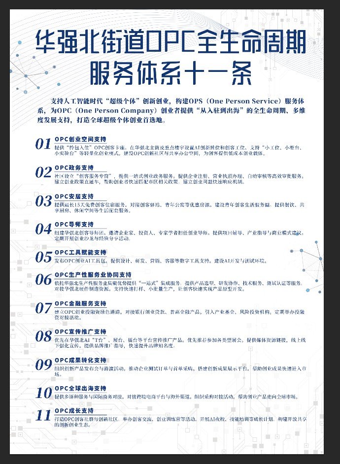 随着AI技术的普及和个体生产力的显著提升,OPC(One Person Comapny,一人公司)成为智能经济时代新型企业形态。而华强北正以一场“全域空间+全链服务+全维生态”的系统性布局,全力跑出AI时代的“华强北加速度”。