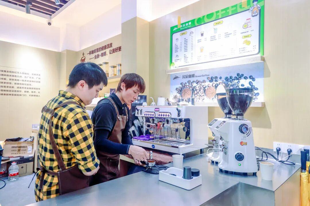 其中,金融赋能消费体验区依托辖内重点金融机构中英人寿广东分公司,深入挖掘其股东中粮集团资源,并引入其战略合作伙伴——宾尼健康管理公司运营健康咖啡,全方位赋能社区居民品质生活。