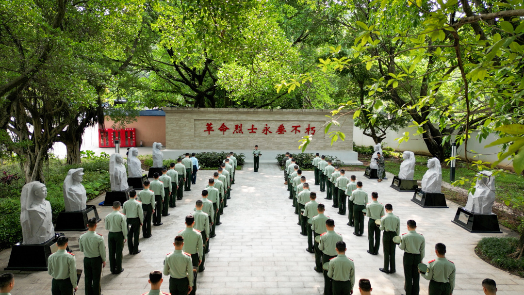 在支队英模园,古榕参天、翠色环绕。镌刻着“革命烈士永垂不朽”的纪念墙在绿荫掩映下庄严肃穆,两侧英烈雕像静静伫立,仿佛在无声诉说着峥嵘岁月。全体官兵军容严整、列队肃立,向长眠于此的革命先烈、英模功臣默哀致敬,深情追思他们为部队建设、国家安宁、人民幸福献出宝贵生命的英雄壮举。