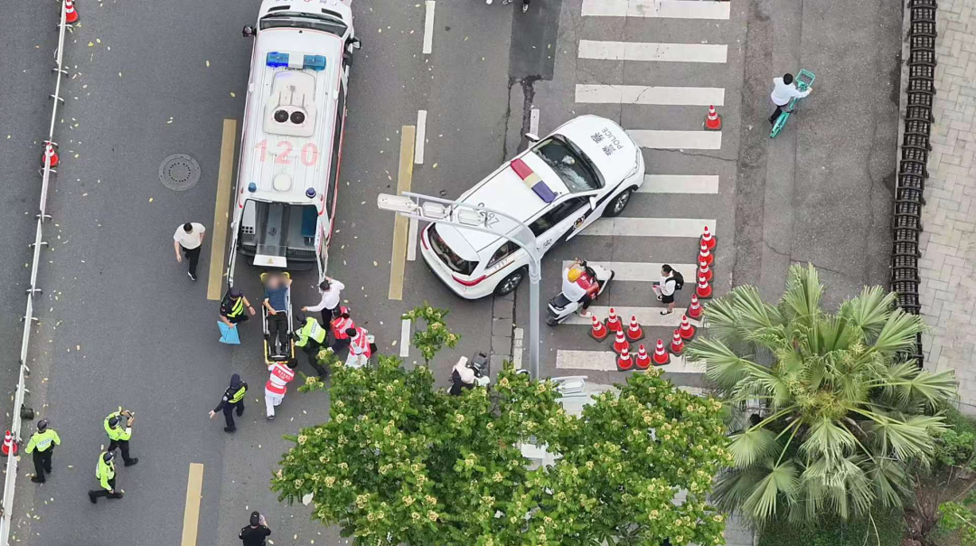与此同时,警用无人机发挥高空覆盖优势,开展高空喊话疏导,清晰引导周边群众有序避让、过往车辆主动让出应急救援通道。短短数分钟内,原本拥堵的现场快速疏通,为医疗救援开辟出应急通道,抓住了抢救的黄金时间。