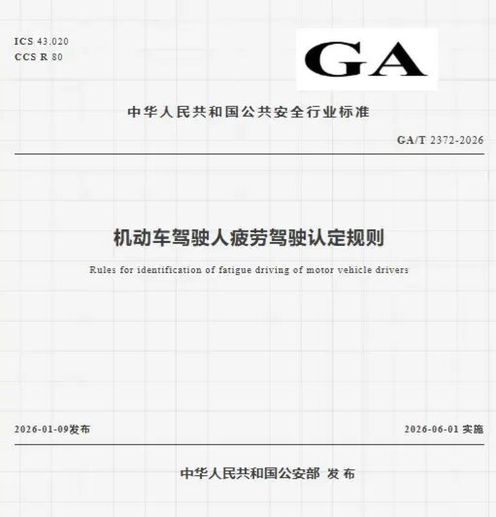 公安部发布的《机动车驾驶人疲劳驾驶认定规则》(GA/T 2372-2026)将于2026年6月1日全国落地执行。
