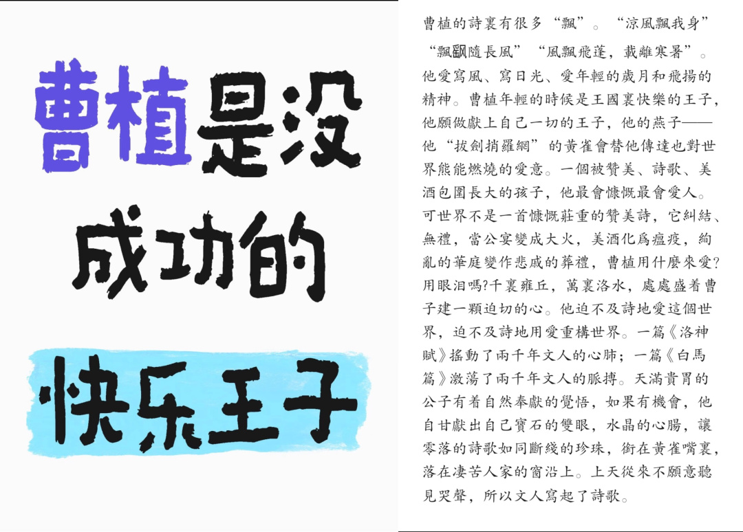 小姜对曹丕的着迷始于一个偶然。小时候读《七步诗》,她觉得“这个皇帝很坏”,直到高中无意间翻到一本曹丕的书,才发现“印象中阴鸷、善用权术的帝王,居然也能有这样真诚动人的文字。”她发现曹丕的思想“鲜丽、敏锐、细腻”,更惊叹于在那个普遍封建的年代里,他对身后事、对政权、对家庭,乃至对整个落寞时代所表现出的“超越时代的通透与豁达”。