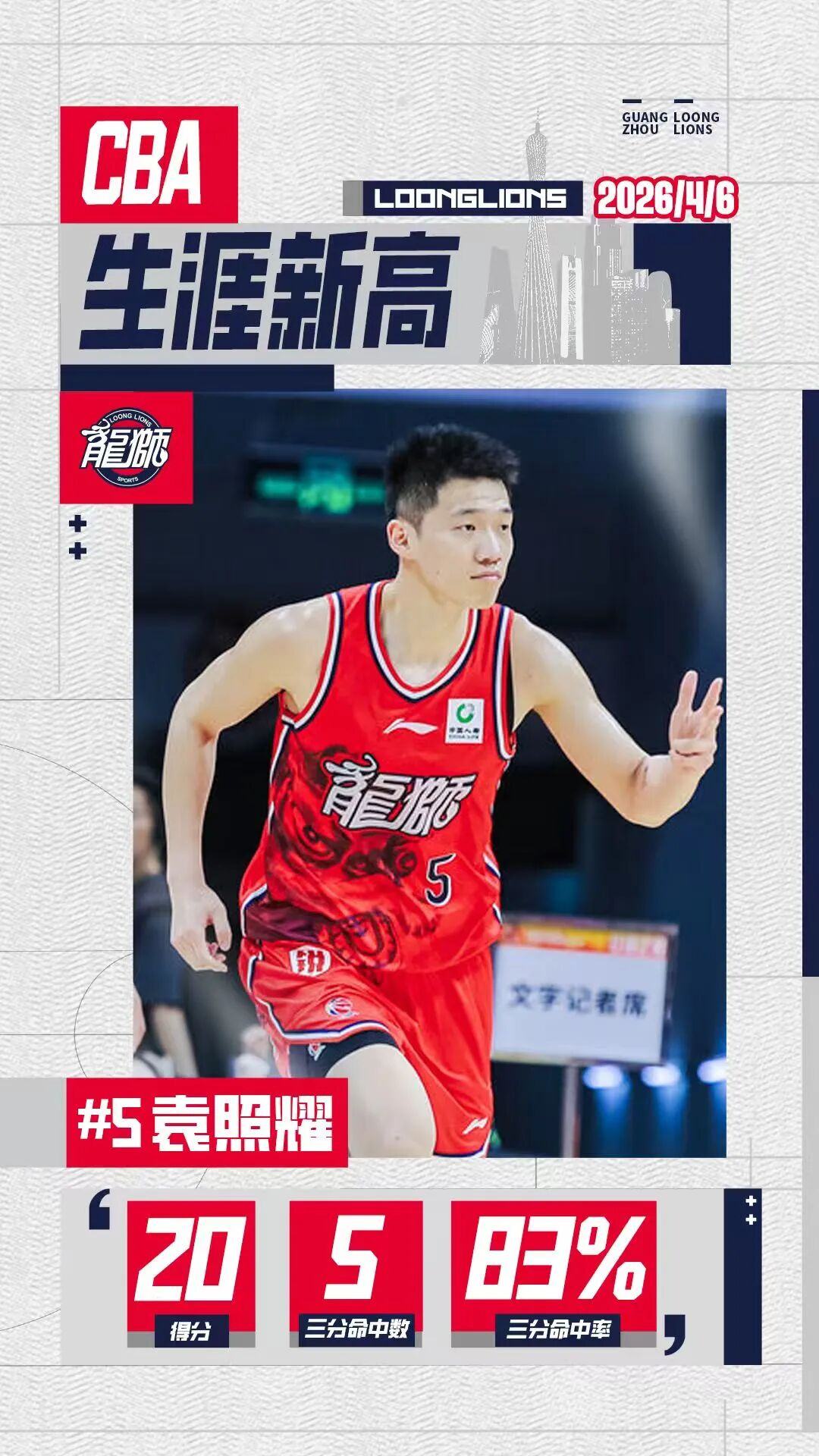 袁照耀拿到职业生涯新高的20分。