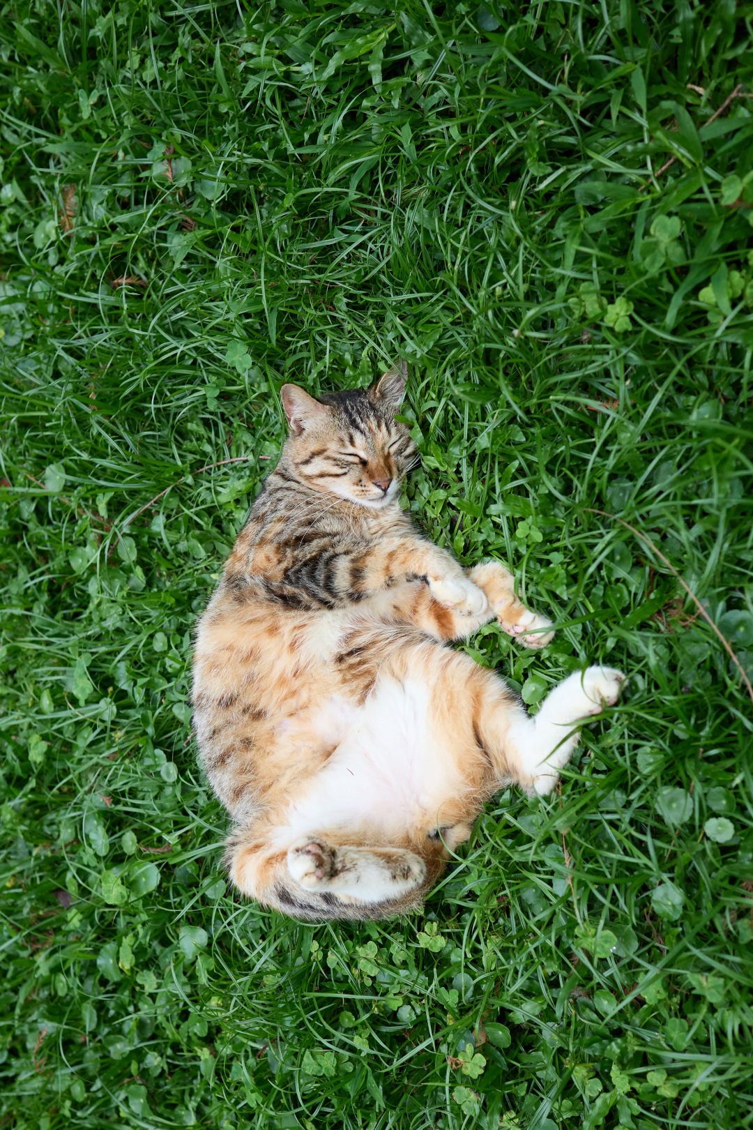 4月5日,越秀公园,猫咪在草丛中酣睡。