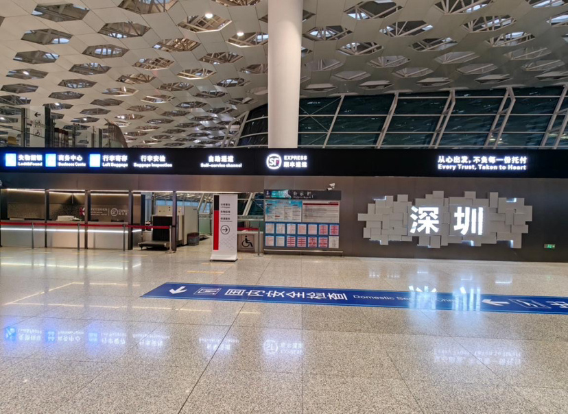 在宝安国际机场,顺丰将出发厅商务中心打造为服务升级的首站示范点。空间设计融合机场环境与顺丰品牌视觉语言,门楣简约大气,墙体增设融合深圳城市标识与国际元素的打卡墙;服务柜台采用悬浮式结构搭配内嵌灯带,兼具科技感与高雅气质。功能区域也全面优化——顺丰服务区、行李寄存区、内场仓库区各司其职,动线清晰,体验流畅。