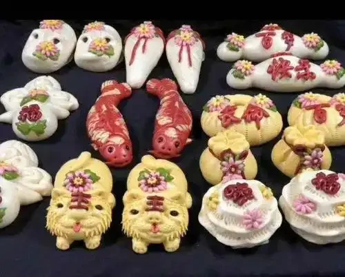 子推馍(面花)流行于山西、陕西等地,顾名思义,是为了纪念介子推而衍生出来的面食。当地人用发酵面团捏制成各种形状,如燕子、蛇、兔、虎或文房四宝等,栩栩如生。