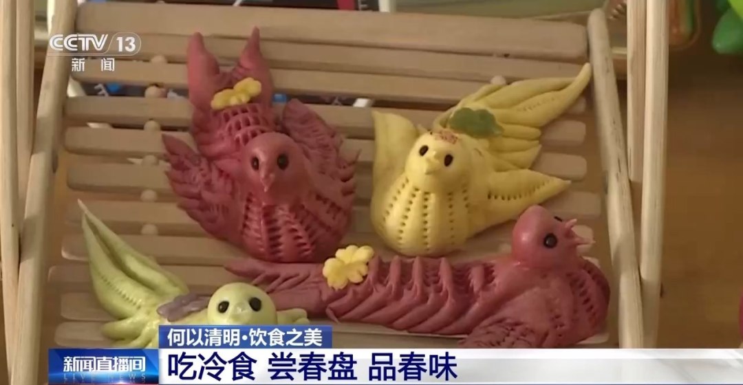 《东京梦华录》记载:“用面造枣锢飞燕,柳条串之,插于门楣,谓之子推燕。”古人用面粉和枣泥做成燕子形状的面点,用柳条串起挂在门上——既是食物,又是装饰。