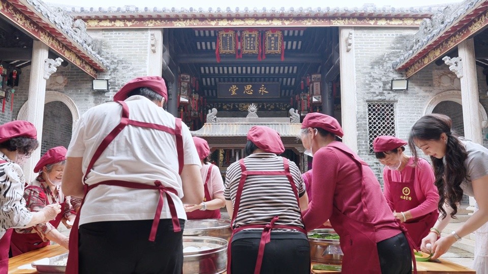 清明节气,春润岭南,广珠城际铁路唐家湾站旁,700余年古村官塘正迎来一年中最具烟火气的时节。祠堂内暖意融融米香萦绕,灶上大锅里水汽腾腾,茶果在蒸汽下渐渐变得透亮软糯,村民们围坐一圈,擀皮做馅,笑语不断。