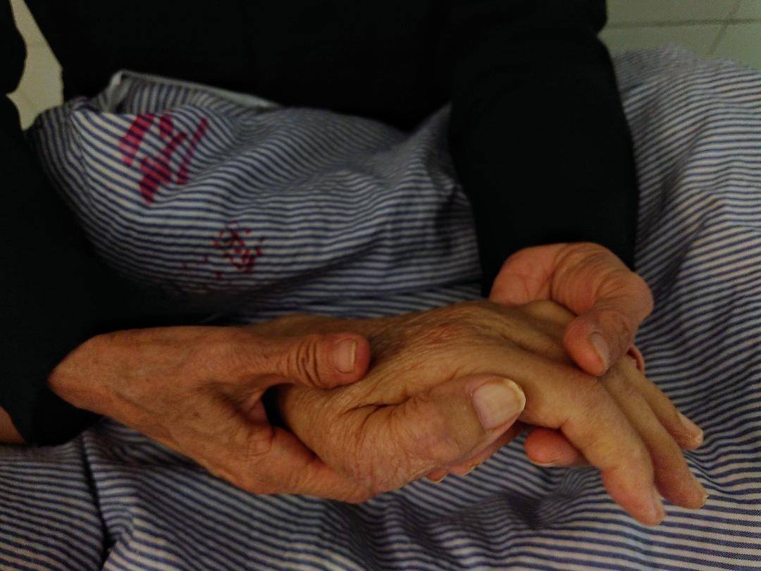 田甜的团队第一次见到老人时,老人手里攥着一张泛黄的老照片——那是他和妻子年轻时唯一的一张生活照。很长一段时间里,他一边吃药控制疼痛,一边往返照顾妻子。直到病情恶化、转入病区后,他才明显表现出对死亡的焦虑。