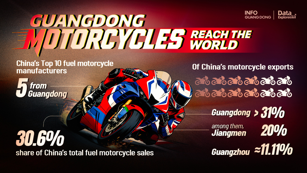 Notably, half of China's top 10 motorcycle brands are based in Guangdong, collectively holding 30.6% of the country's total motorcycle sales. The province's motorcycle engines are mainly concentrated in two cities, namely Jiangmen in south‑central Guangdong and the provincial capital Guangzhou.