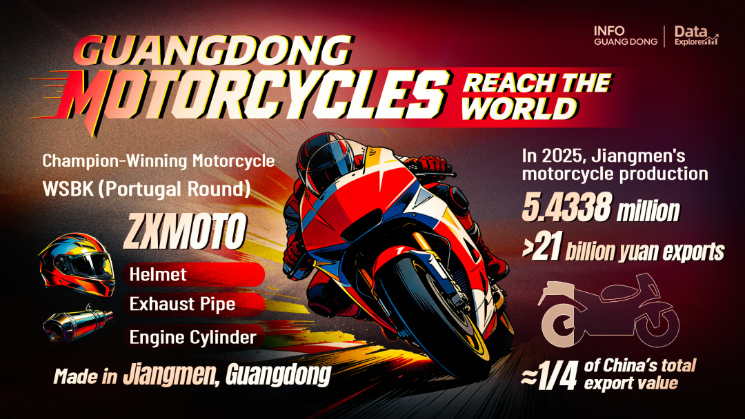 Official figures show that Guangdong accounts for at least 30% of China's total motorcycle exports. And an industrial chain from the province has powered ZXMOTO's WSBK campaign, with its exhaust pipe, helmet, and engine cylinder made in Jiangmen, Guangdong and engine valve produced in the provincial capital Guangzhou.
