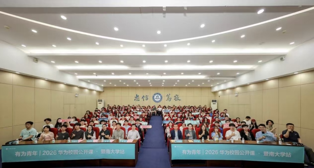 近日,以“创新驱动科技未来・共赴智能汽车时代”为主题的华为校园公开课在暨南大学石牌校区举办。本次活动由华为广东终端业务部智选车总监夏颖鑫主讲,吸引了一百五十余名学生积极参与,暨南大学教务处处长刘涛、研究生院副院长郭团等出席活动。