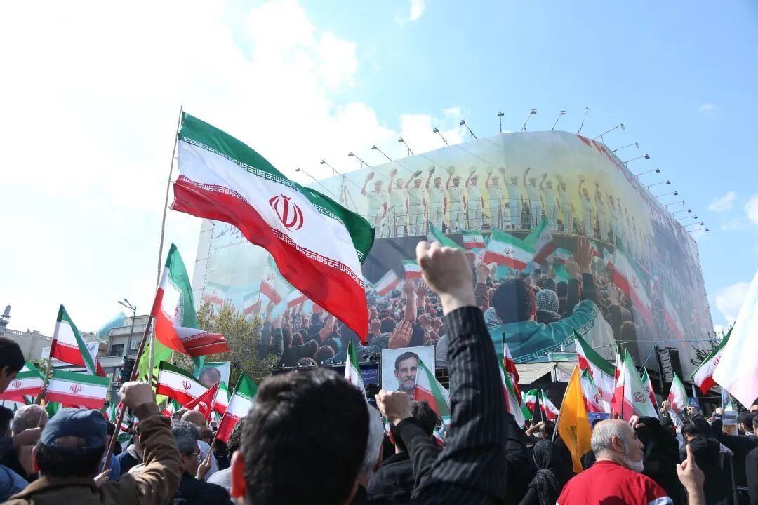 4月1日,在伊朗首都德黑兰革命广场,民众参加为伊朗伊斯兰革命卫队海军司令坦格西里、伊朗武装部队总参谋长顾问贾姆希德·埃哈基及伊朗武装部队军事人员举行的告别仪式。新华社记者 沙达提 摄