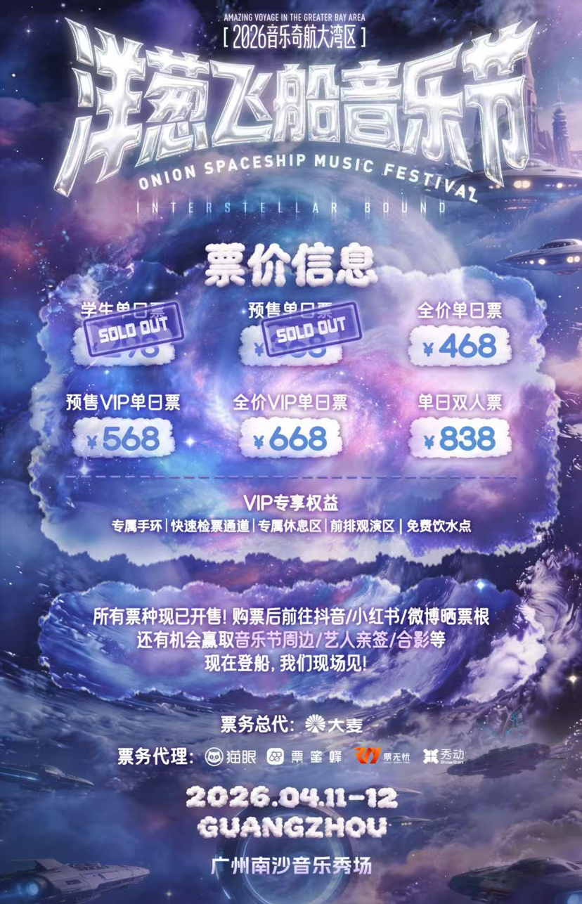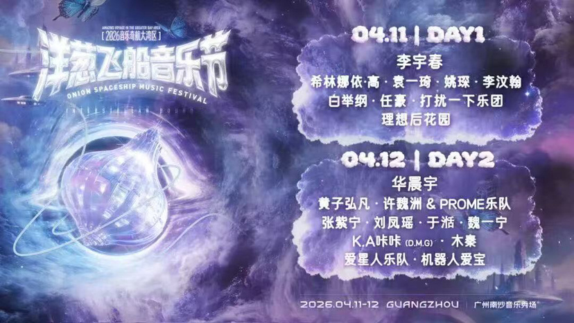 2026音乐奇航大湾区洋葱飞船音乐节全阵容现已公布!