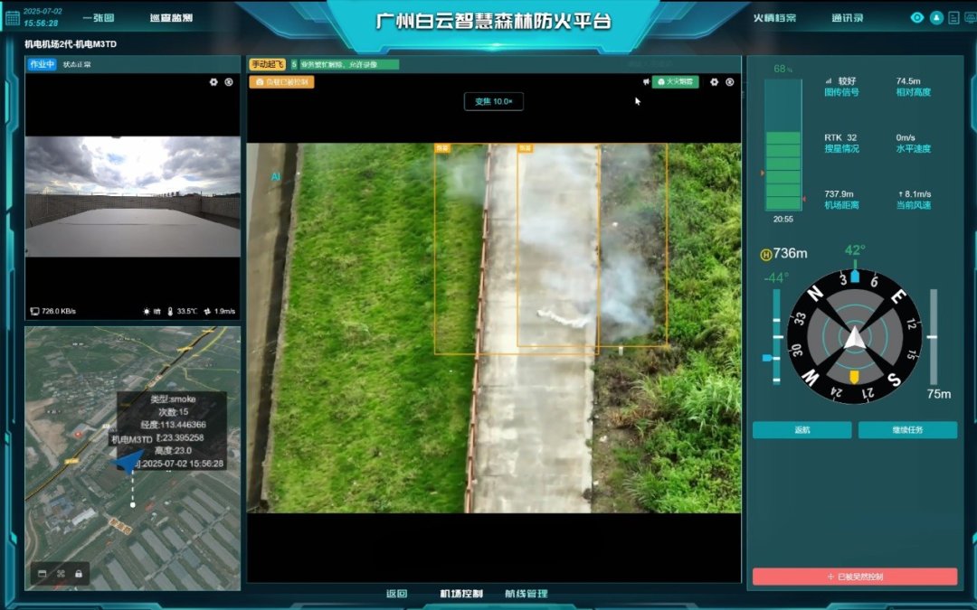 面对特殊的“林中有城、城中有林”复杂环境,该平台创新构建“双重AI研判+扁平化指挥”的核心机制,前后端AI协同,精准区分炊烟与火情。从发现异常到护林员收到任务,全程只需几分钟,真正做到了“火情早发现、早处置”。这种全链条闭环、高效率协同的模式,为同类城区的护林防火提供了独特的“白云示范”。