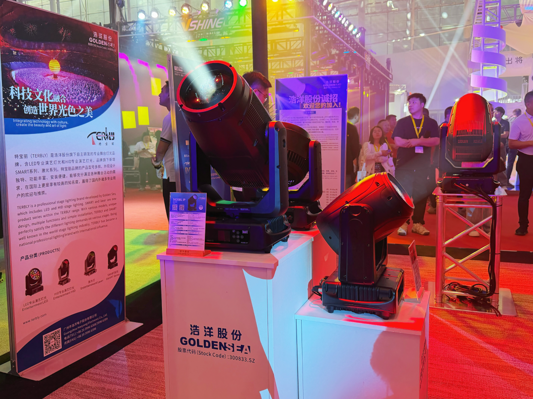浩洋股份携Terbly、AYRTON、SGM、GSARC、WTC、GOLDSEA UV六大品牌全阵容参展,覆盖舞台灯光、建筑照明、舞台桁架、紫外消毒等领域,打造从高端演艺到文旅夜游、从室内舞台到户外场景的全场景产品矩阵。浩洋股份董事长蒋伟楷表示:“感谢番禺区委、区政府对灯光音响产业与浩洋股份的大力支持。新的一年,我们将在文旅、主题公园、文化演艺等领域全新布局,以科技赋能产品创新,为产业与区域高质量发展贡献力量。”