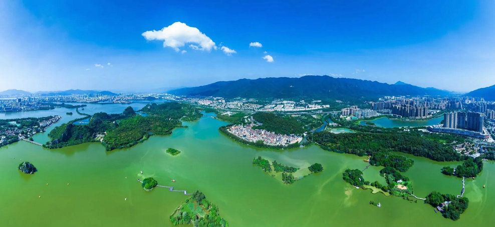 走进这里,只见碧绿的湖水与葱郁的植被相互交织,陶渊明笔下“山气日夕佳,飞鸟相与还”的诗意景象被写进了现实中的星湖。