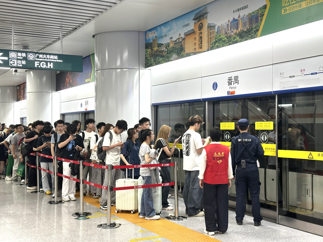 城际番禺站乘客在有序候车。
