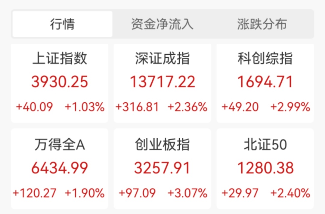 4月8日,A股三大指数高开,上证指数高开1.03%,深证成指涨2.36%,创业板指涨3.07%,全市场逾5000股上涨。