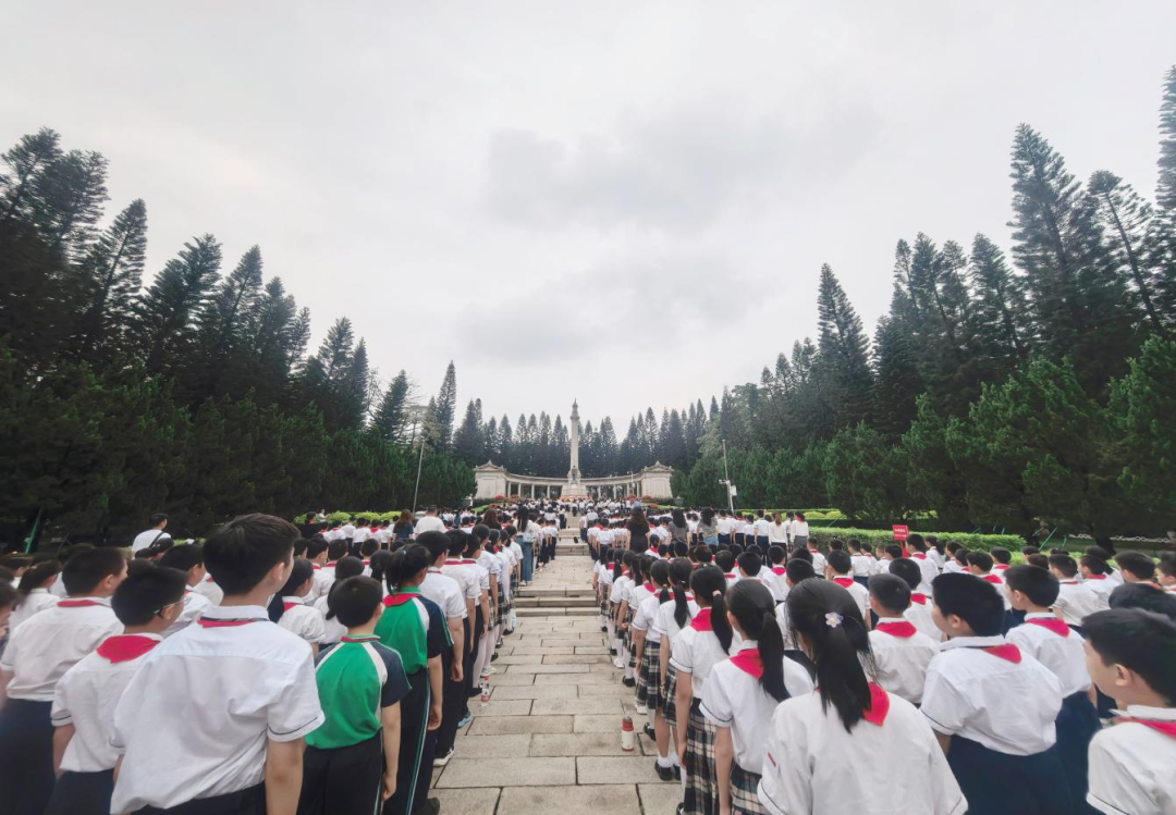 活动中,来自华南农业大学附属小学的近千名少先队员齐声唱响《我们是共产主义接班人》,稚嫩而嘹亮的歌声在纪念碑上空回荡,传递着继承先烈遗志、争做时代新人的坚定决心。少先队员代表生动讲述了十九路军将士舍生取义、浴血奋战的英雄事迹,让在场人员深刻体会到今日幸福生活的来之不易。