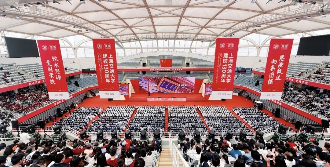 4月8日,上海交通大学庆祝建校130周年大会在闵行校区霍英东体育中心举行。